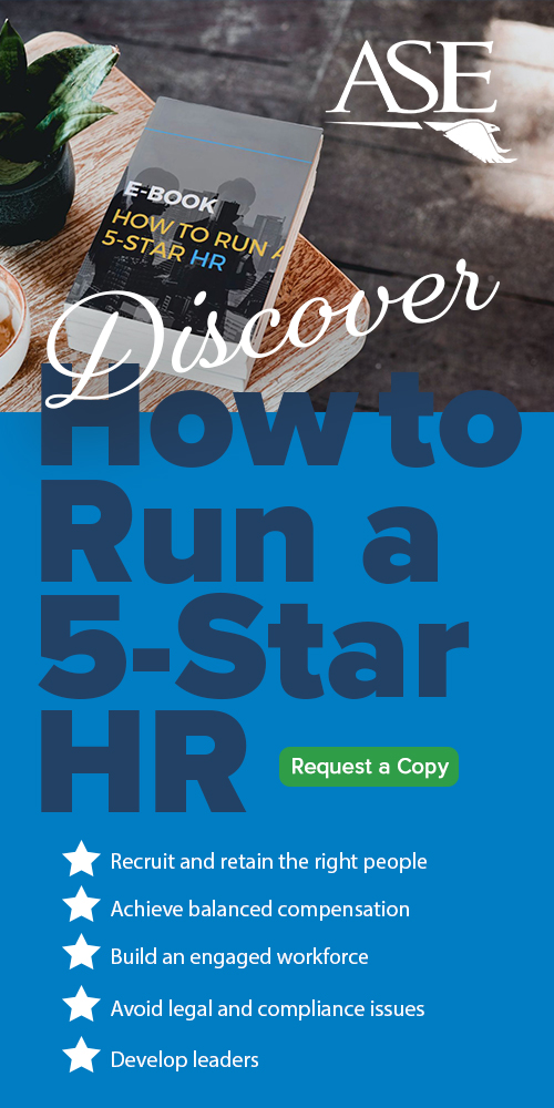 You joined ASE for a reason. That reason may have been for compliance advice, HR support, training, comp data, networking, or something unique to your organization. As we continue to help you with the reason or reasons for joining, we invite you to explore the multiple services that you also may find valuable. The following are member exclusive benefits each ASE member organization has access to for Everything HR.