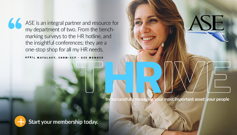 In addition, ASE offers over 80 unique employee development courses, held both in-person and virtually - most of which offer HRCI or SHRM recertification credits. ASE members save an average of 20% with exclusive member pricing.
